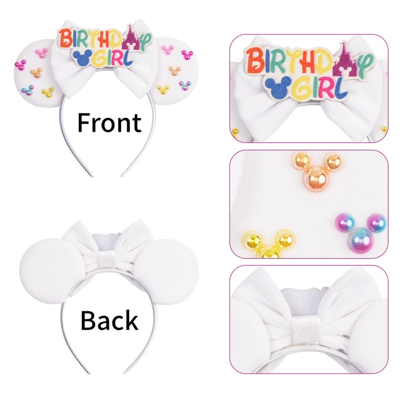 bianbaistar White Mouse Ears Headband, Matte Bow & Pastel Accents for Birthday & Theme Parks
