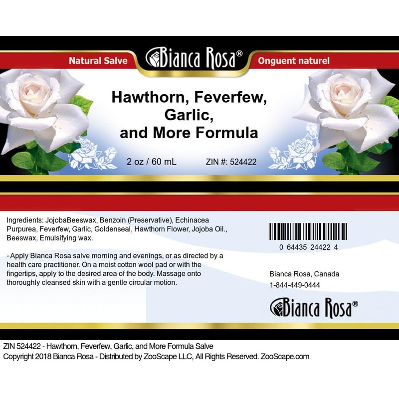 Apply Bianca Rosa salve morning and evenings, or as directed by a health care practitioner. On a moist cotton wool pad or with the fingertips, apply to the desired area of the body. Massage onto thoroughly cleansed skin with a gentle circular motion. - Bianca Rosa is an exclusive line of premium-quality natural products sourced from only the finest and purest ingredients from around the world. Bianca Rosa is hallmarked by the highest possible standards of purity, stability and freshness. All Bianca Rosa products are prepared with the highest level of quality control, from the raw materials used through the entire manufacturing process, up to and including the moment that the finished product is sealed for freshness and shipped to you. Our highest possible standards backed by our personal guarantee. - Bianca Rosa makes all products as affordable as possible and we are constantly searching the market to maintain our affordability and to look for new ways to serve you. Bianca Rosa has been a trusted household name for many families throughout the world since the 1990s. Bianca Rosa is packed in tamper-proof, recyclable containers. - ZooScape is proud to be the exclusive distributor of all Bianca Rosa products, including creams, salves and oils in the United States, Canada and around the world. - If irritation or redness occurs, discontinue use immediately.