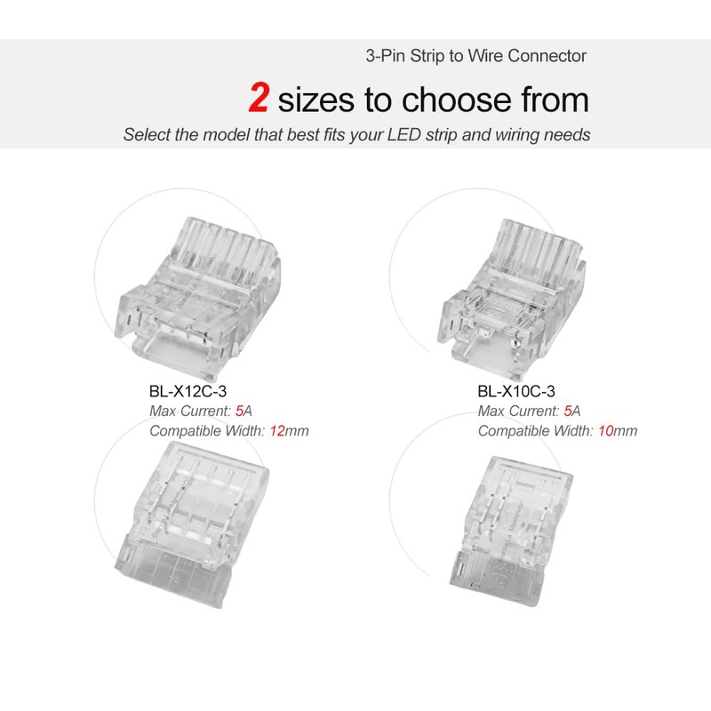 Strip-to-Wire Connection: Suitable for creating custom-length connections or strip-to-strip jumpers for flexible installations and creative room layouts. Connects directly to 12mm LED strips and standard 22-20 AWG wires, making it for DIY projects and professional installations.