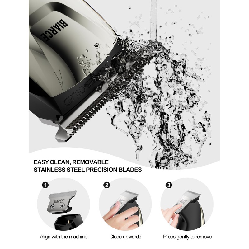 - đ„ăNo damage to hair/skinăMens Cordless beard clippers is constructed with a stainless steel Precise blade for super smooth and tightcutting. Without pulling or catching hair. The BIARCE professional hair clipper's sharp precision blades ensure smooth contact with the skin for a painless, comfortable and efficient hair removal experience.The beard trimmer tip part adopts R-shaped rounded corners design for safe 360 degree contact with the skin,also great hair trimmer for children.