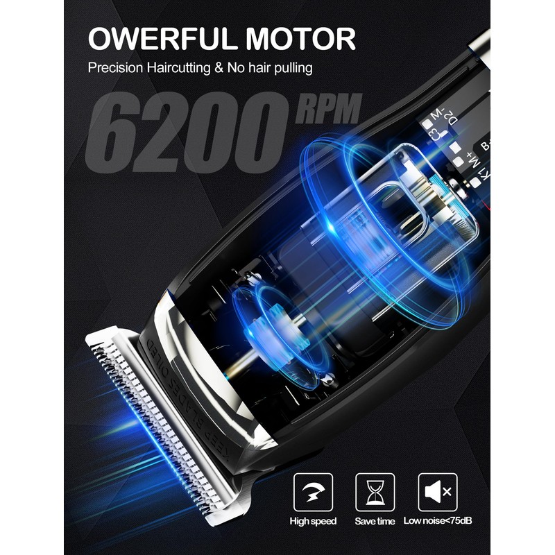 - đ„ăPowerful motor &Low noiseă This clippers for hair cutting rotational speed is 6200 RPM, providing you with quiet and effective hairstyle trimming, Stronger power and less noise. This professional hair trimmer for men is an indispensable part of barber supplies.he strong power drives the men's electric barber clipper to complete a variety of trimming jobs quickly while delivering a smooth and effortless clipping in no time.