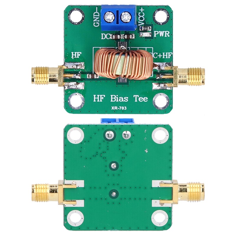 1、BIAS TEE MODULE: Suits perfectly for broadband amplifier, this filter module will reduce the working difficulty. 2、WIDE RANGE: The wide frequency range from 0.2 to 180MHz ensures effective clutter filtering, very practical. 3、ACTIVE ANTENNA: RF power supply from active antenna will largely increase work efficiency with high stability. 4、LOW LOSS: This bias tee module enables low loss, 0.1dB at 1MHz and 0.4dB at 100MHz, promising signal quality. 5、DATA INPUT: Adopting high frequency magnetic ring, the communication data is injected through the RF terminal.