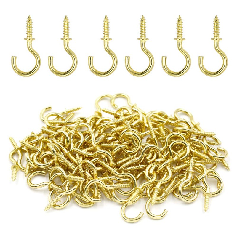Biaungdo 100 Pcs 5/8" Ceiling Cups Hooks Screw Hooks Ceiling Cup Hooks Self-Tapping Screws Hooks Gold -