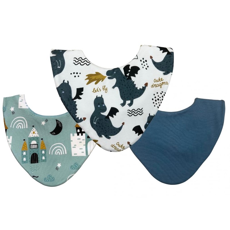 Bibbilyboo - Waterproof Baby Dribble Bib - 3 pack | 0-2Y | Absorbent Core + waterproof backing | Award Winning Teething Bibs (Dragons)