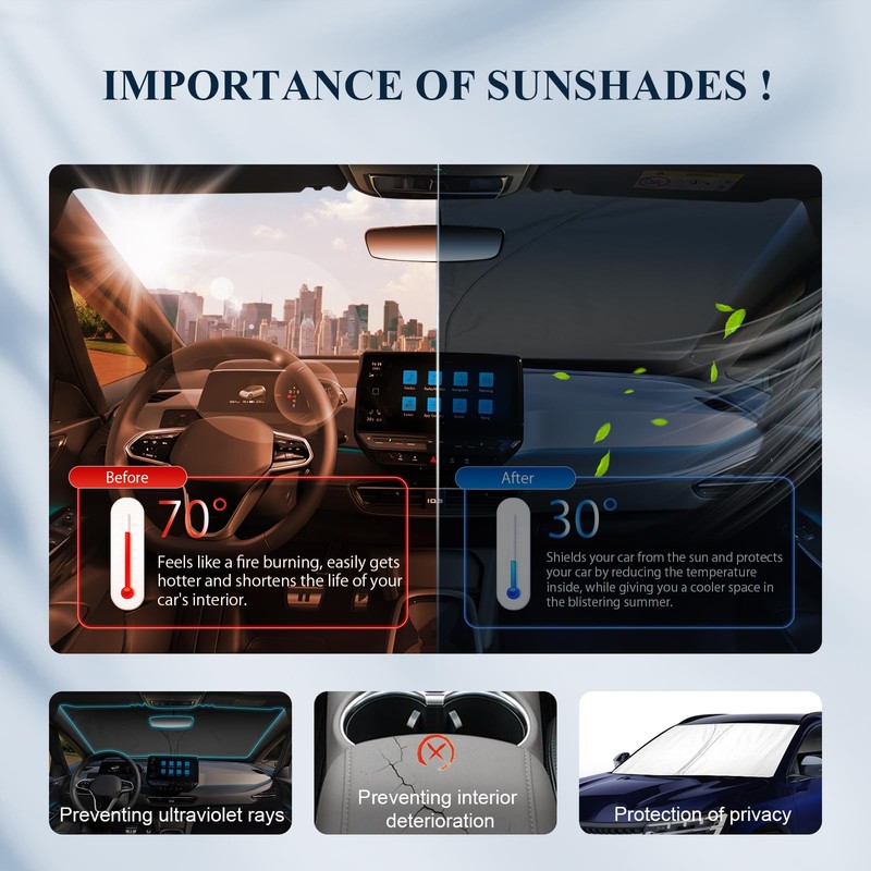 - Ausgezeichneter Sonnenschutz: Bietet hervorragenden Schutz vor Sonneneinstrahlung und schtzt das Innere des Fahrzeugs, einschlie?lich Armaturenbrett und Sitzbezge, vor UV-Sch?den