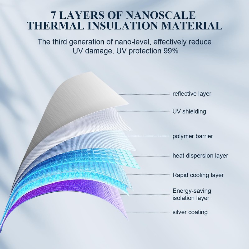- Hochwertige Materialien: Die Schutzabdeckung besteht aus erstklassigem Material mit einer silbernen, reflektierenden Vorderseite, die UV-Strahlen abwehrt. Die dunkle Seite isoliert effektiv die W?rme