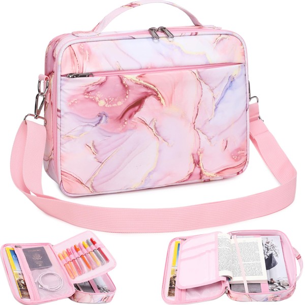 Bible Cover Case for Women Grils Bible Cover with Shoulder Strap Bible Case for Bible Study Accessories-Ideal Gift for Women and Girls (Pink