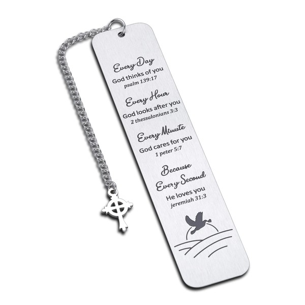 - Bulk Bible Bookmarks for Women Men - This is a gift that goes beyond flimsy cardboard bookmarks. This metal bookmark is made from stainless steel and engraved with motivational bible verses. Encouraging bible verse bookmark with cross pendant make perfect Christmas, Christian mothers day, religious, inspirational, church fathers day, bible verse,faith,jesus,spiritual,biblical, happy birthday,retirement bookmarks gifts for women,men, kids, book lover,adult,teen boy,girl,son,daughter,grandma.