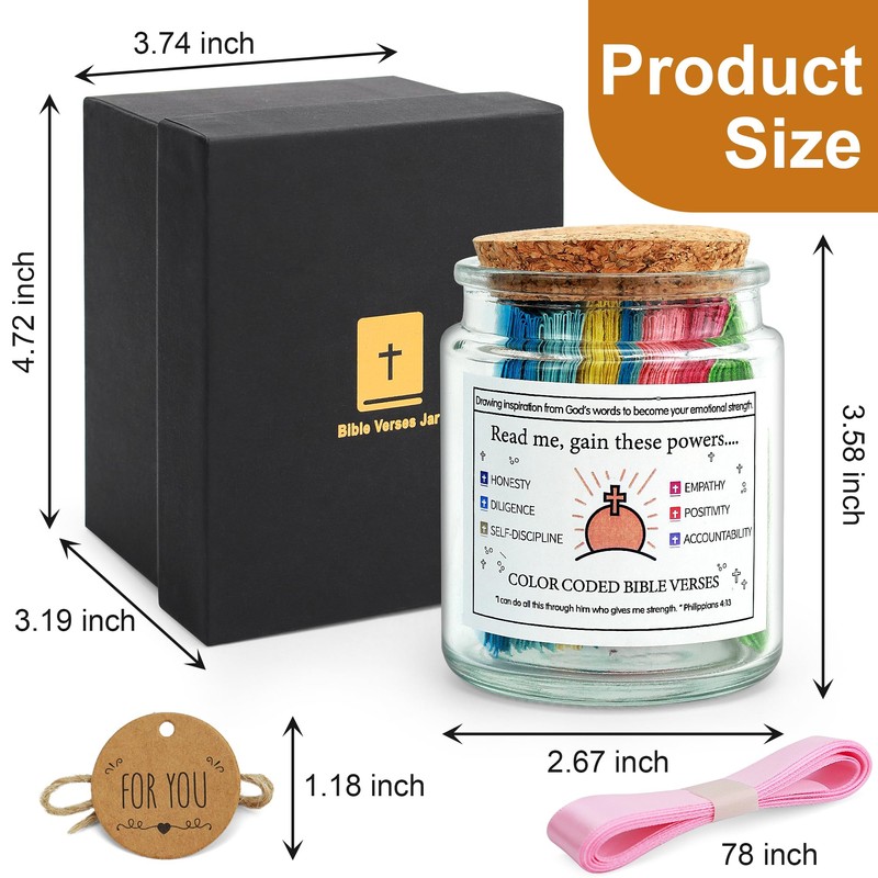 - 【Arefully Designed】Our Bible Verse Jar is crafted from sturdy glass, designed to withstand the test of time.The verse card comes with a protective film, which is waterproof and tear proof,designed for long-term, repeated use, Each stylish gift box contains with a 78-inch ribbon for a cute bow. It perfectly meets your gift-giving requirements.