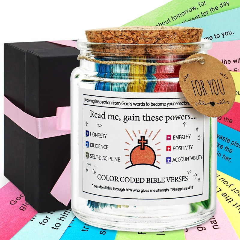 - 【Nourish the Soul】Discover our Bible Verse Jar, featuring 92 meticulously chosen Bible passages that encompass the full spectrum of daily emotions. Each verse is color-coded to represent distinct feelings, enabling you to pick the perfect passage for your mood, thus facilitating a smoother path to finding solace in God's word. Allow the profound wisdom of God and Jesus to envelop you, illuminating your days with the glow of faith.