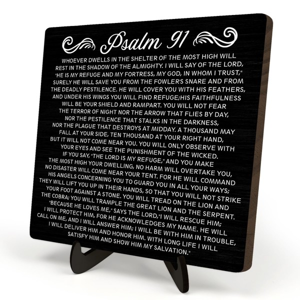 - Inspirational Christian Decor :This beautifully crafted wooden plaque features the uplifting Bible verse Psalm 91 reminding you of the power of faith. A meaningful addition to any Christian desk decor or prayer space, bringing spiritual encouragement to your daily life.