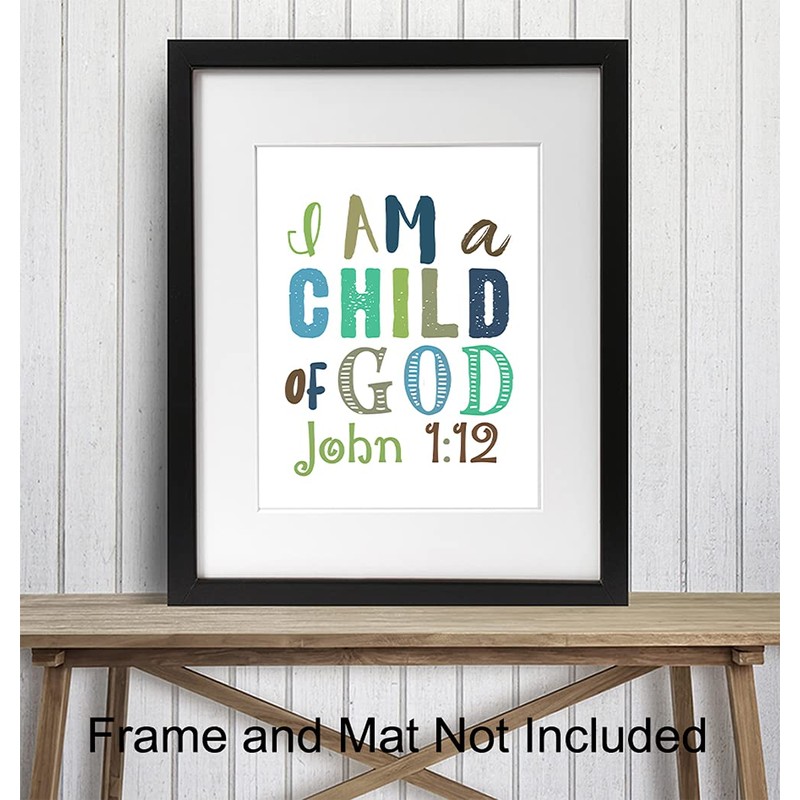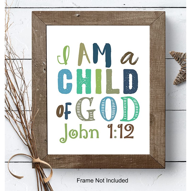 Bible Verse Wall Art - I Am A Child of God, John 1:12 - Holy Scriptures Wall Decor - Toddler Boys Bedroom Decor, Little Boys Room Decorations, Baby Boy Nursery - Christian Gifts - Religious Wall Decor
