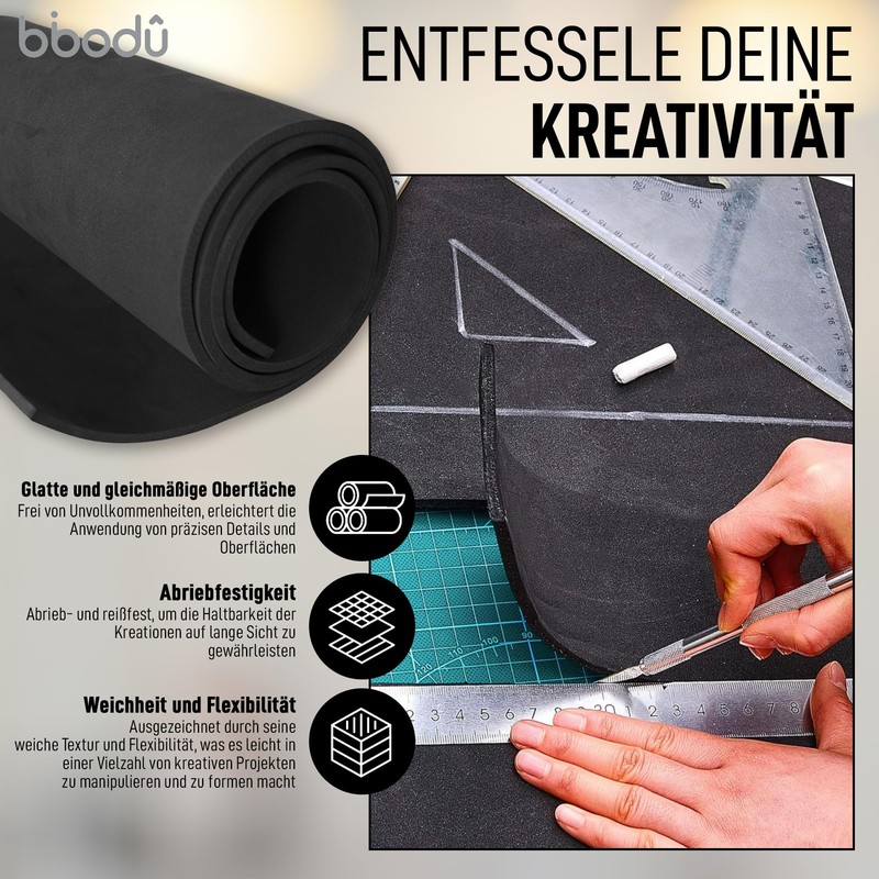 - ✔ [Strengthen your creativity]: Discover endless possibilities with our large foam rubber plates in the size 150 x 32 cm and a thickness of 5 mm, foam rubber black. You have enough material without worrying about defects.