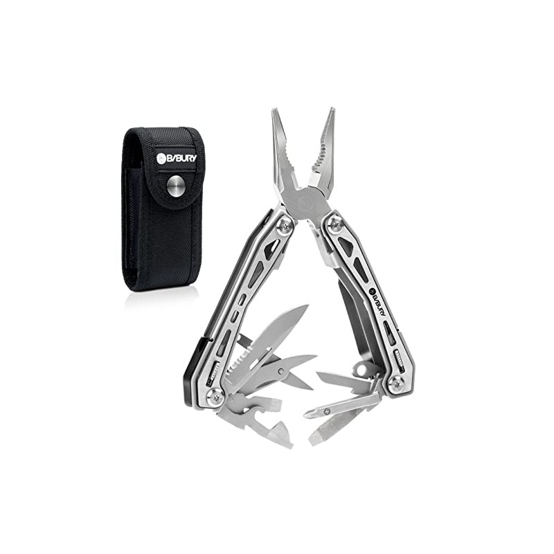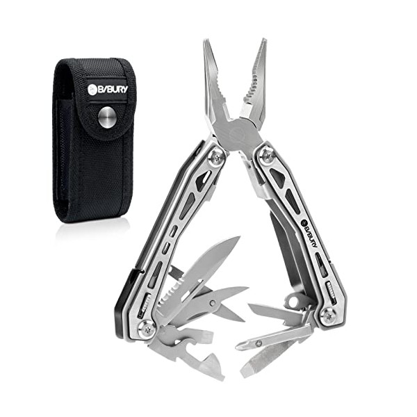 BIBURY Multitools, Portable Multi Tool Foldable Pliers with Scissors, Can Opener and Screwdriver, EDC Tools for Camping, Outdoor Activities, Repairing - Gift for Dad Men - Blackside