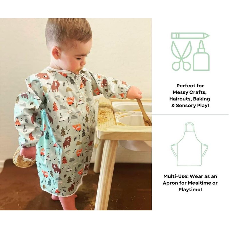 - Multi-Functional: Bibvy is not just a mealtime bib—it’s an all-in-one solution that transforms into an apron for crafting, messy play, baking, sensory activities, and even haircuts! Simply remove the silicone catcher, and Bibvy becomes an apron. Less paint and play dough on clothes is always a win!