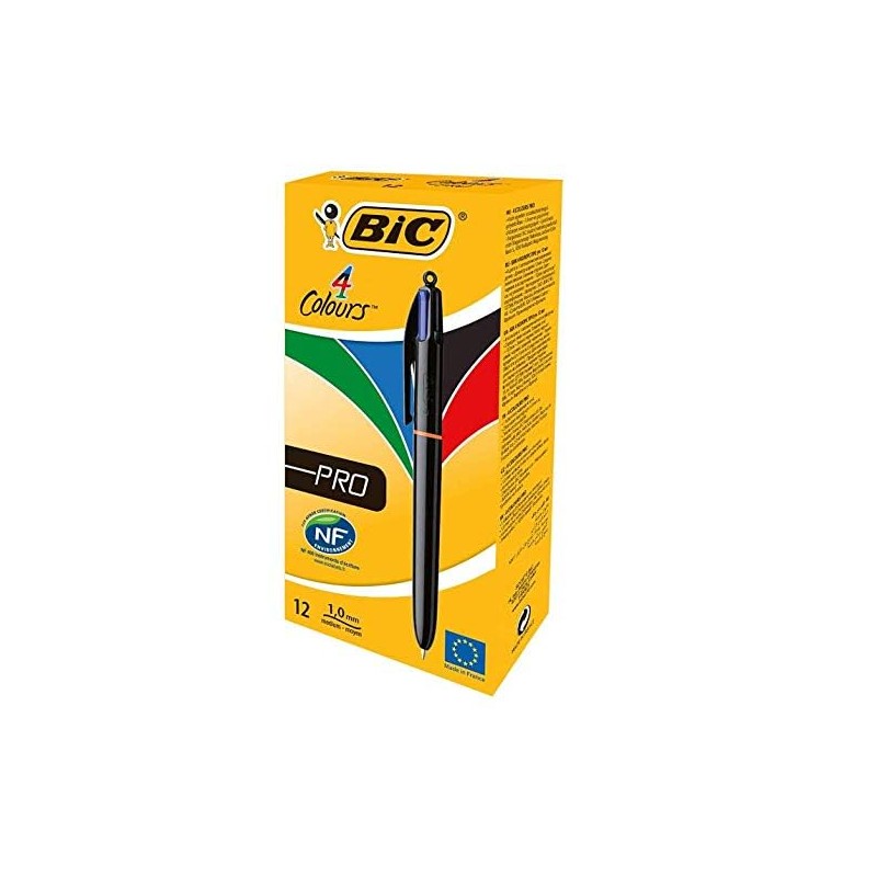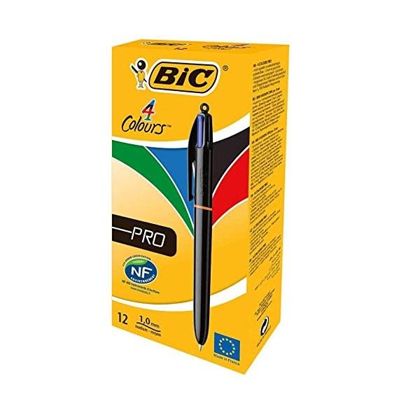 • BIC 4 Colours Pro Retractable Ballpoint Pens, Multicolor, Box of 6