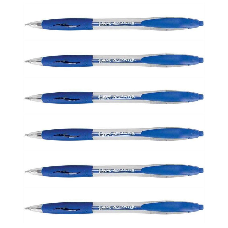 BIC 6 x Atlantis Classic Retractable Ballpoint Pens Medium Point 1mm Blue
