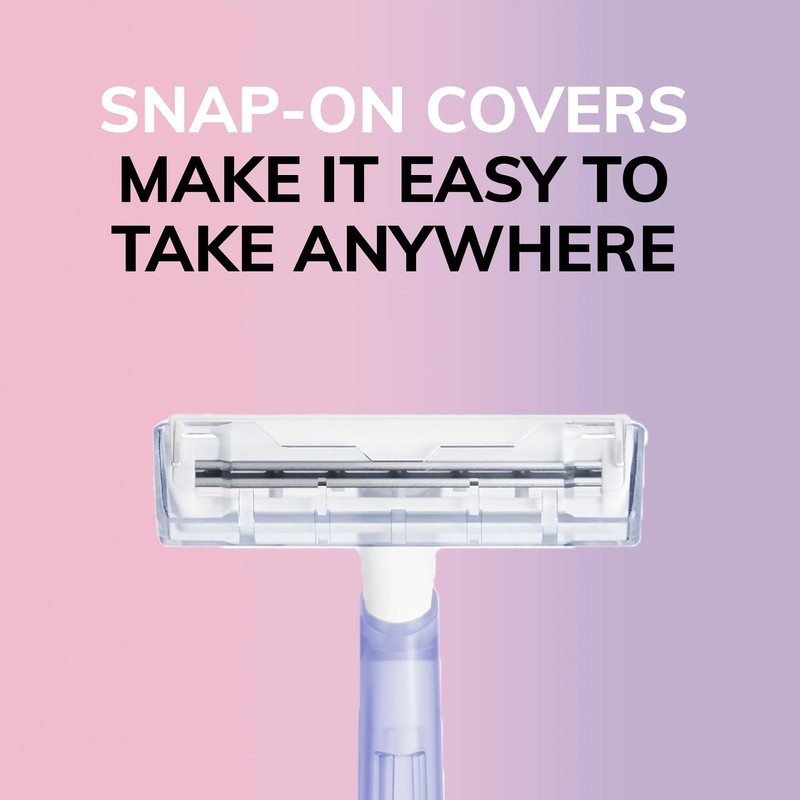 - Convenient disposable razors with Snap-On covers can slip easily into a gym bag or toiletry kit for quick touch-ups, anywhere you need them
