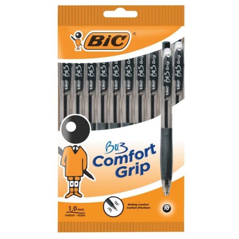 BIC BU3 Comfort Grip - Retractable Ball Pens - 10 Black