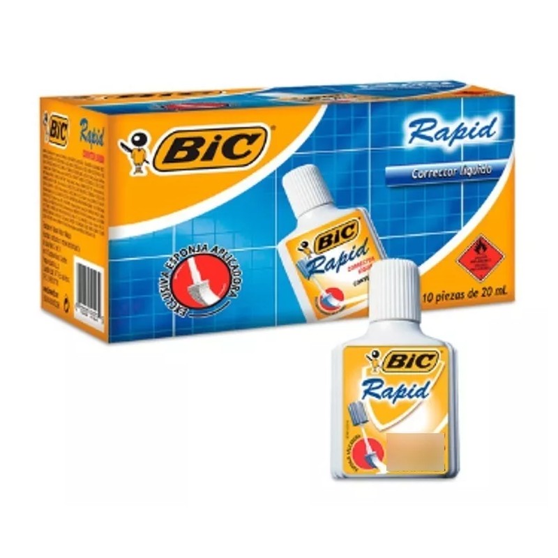 Corrector líquido Bic Rapid en bote con aplicador tipo esponja para máxima cobertura
