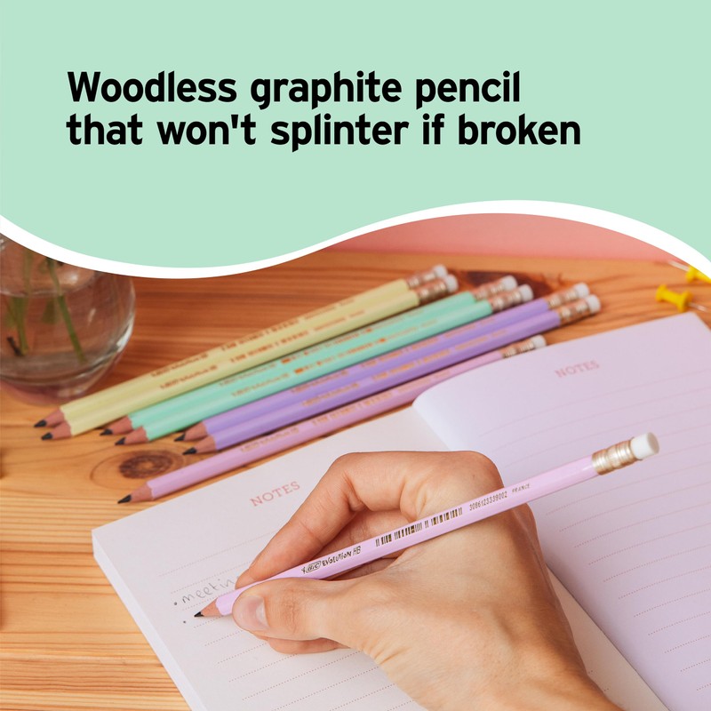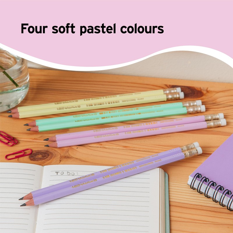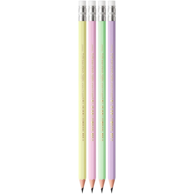- With pastel barrels in 4 exciting colours, which are supplied in a random combination, the BIC Evolution Pastel graphite pencil will put a little fun in your pencil case