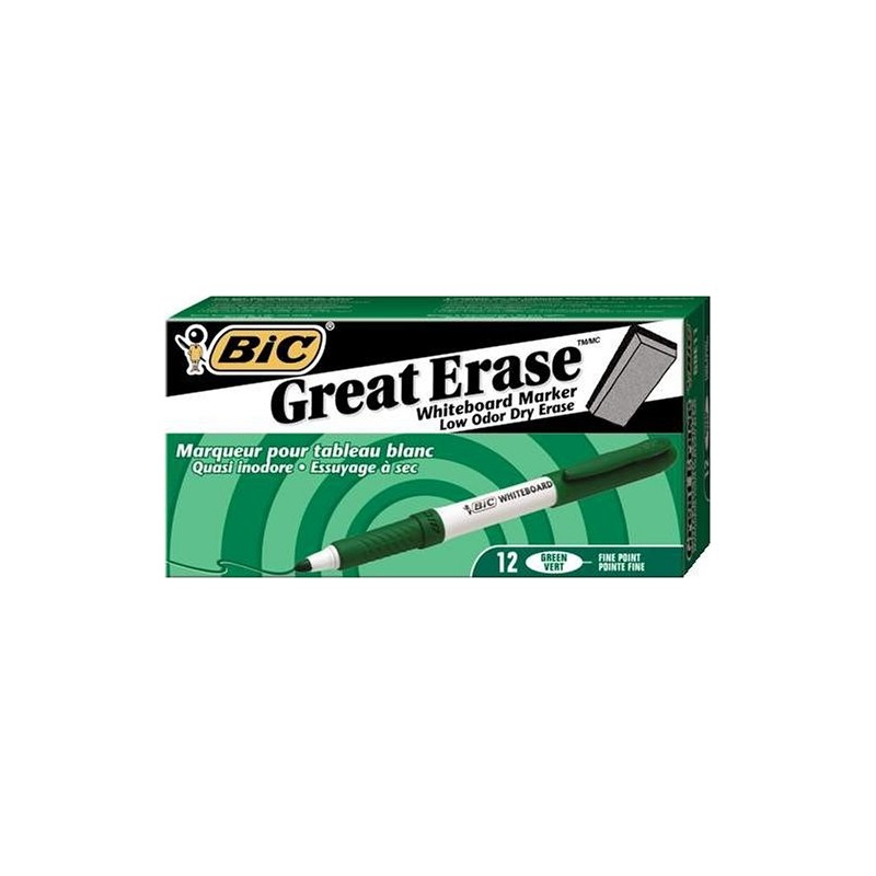 Bic Great Erase Whiteboard Marker, Fine Point, Green , 12 Dry Erase Markers (3 Packages of 12 Dry Erase Markers)