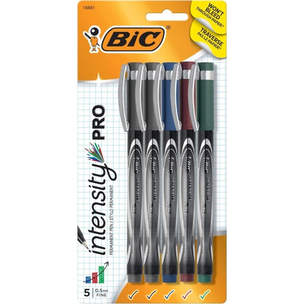 BIC Intensity Fineliner Pro Marker Pen; Fine Tip (0.5mm); 5-Count