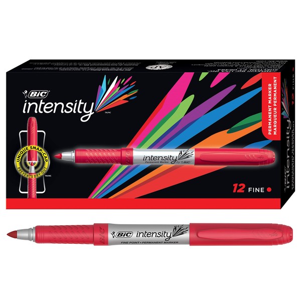 BIC Intensity Permanent Markers, Fine Point, Red, Vibrant & Long-Lasting, 12-Count