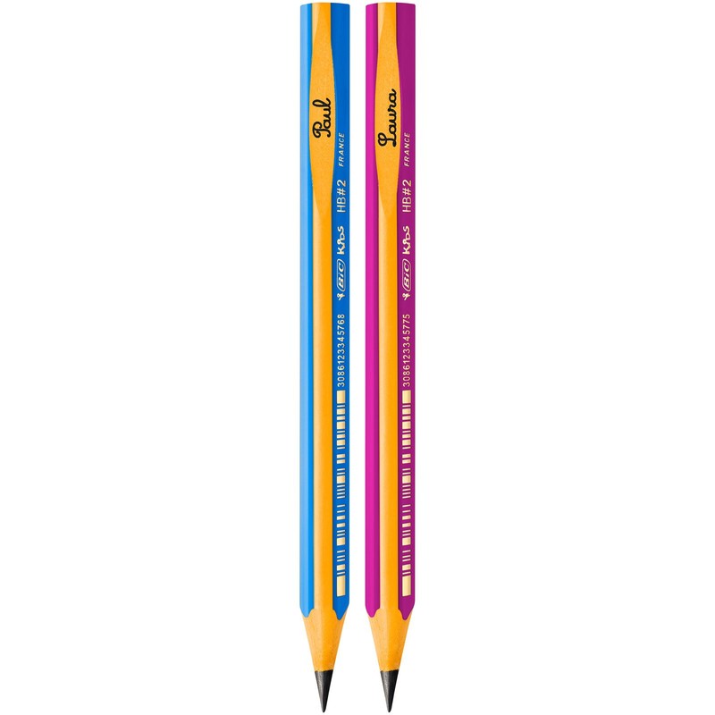 - BIC has been making writing instruments that make life easier for generations of schoolchildren. Developed by childhood specialists, the BIC Kids pencil is perfect for children aged 4 and up who are beginning to write. This box of 12 contains pencils with pink barrels and a special yellow visual guiding line that shows kids where to place their fingers and naturally teaches them how to properly hold a pencil. The triangular shape of the barrels makes it a perfect fit for kids’ hands. They have thick extra-resistant HB leads that won't break if kids press down hard on the paper. They are also easy to sharpen, which helps children gain a sense of independence. And because they are made from a strong durable material that does not contain wood, BIC Kids pencils cannot splinter if broken. Writing is child's play with BIC.