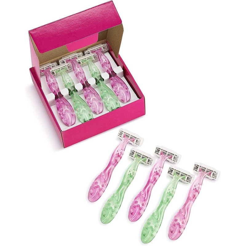 - Women's razor in value pack with 2 different handle colours in green and pink / handy handle with floral decoration