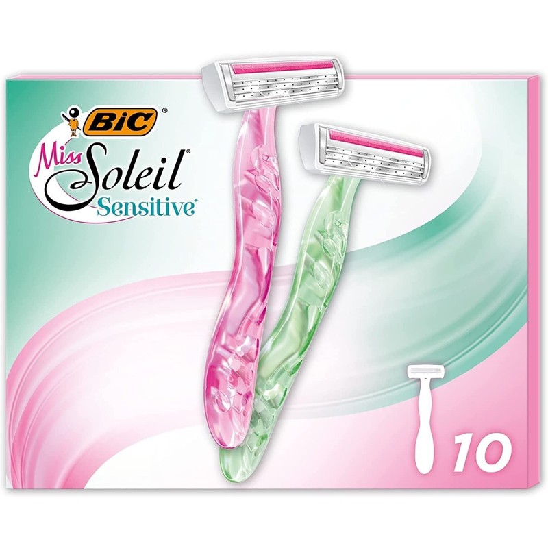- Box contents: BIC Miss Soleil Sensitive Mix / 10 wet razors with 3 blades for gentle hair removal / flexible oscillating head / in various colours
