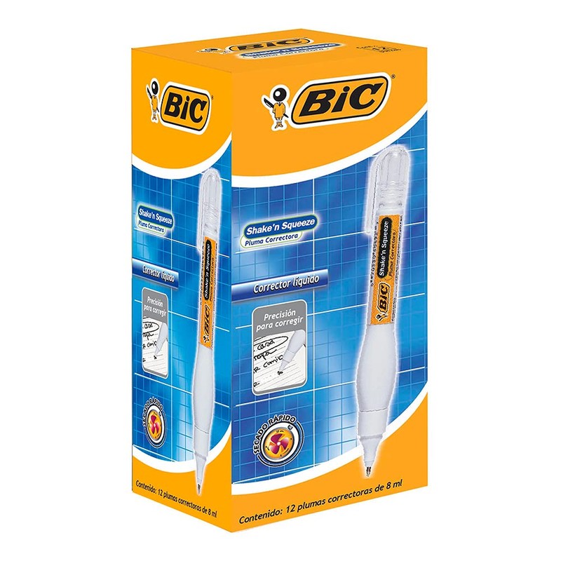 - ESPECIFICACIONES. Incluye un paquete de 12 piezas de pluma correctora BIC. Este corrector líquido ofrece máxima precisión sin grumos.