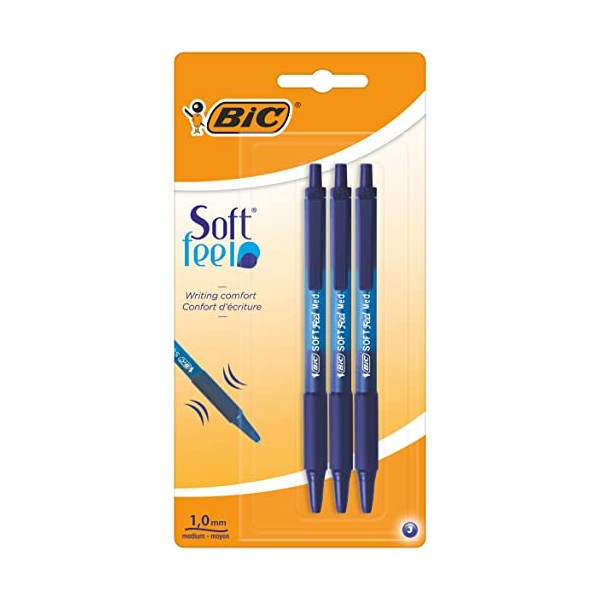 BIC Soft Feel Clic Grip Pen - Blue, Pack of 3