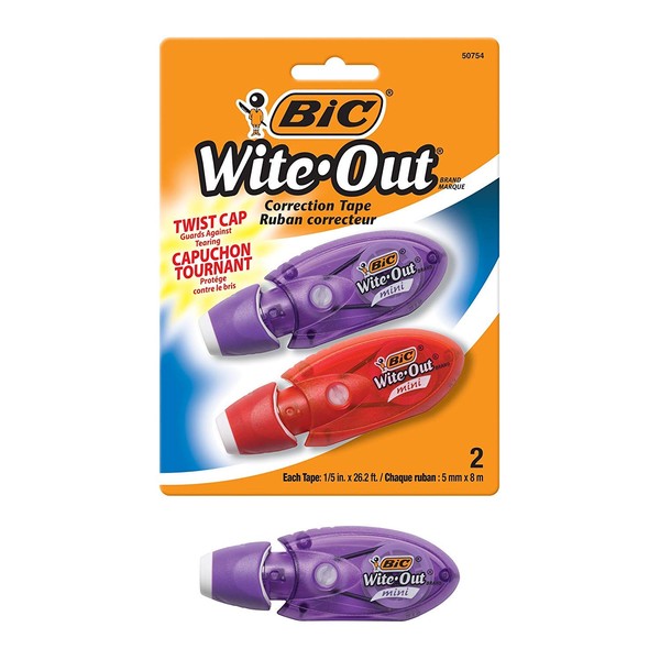 BIC Wite-Out Brand Mini Twist Correction Tape, White, 2-Count (WOMTP21) 2 Pack