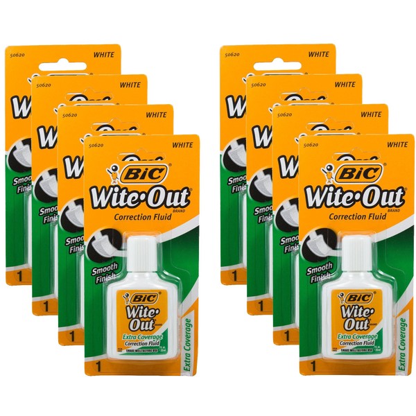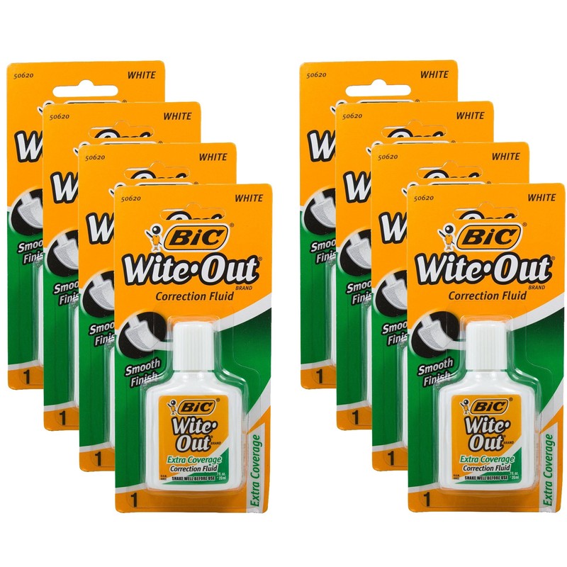Bic Wite-Out Extra Coverage Correction Fluid-0.7 Ounces 8-PACKS (WOFECP1)