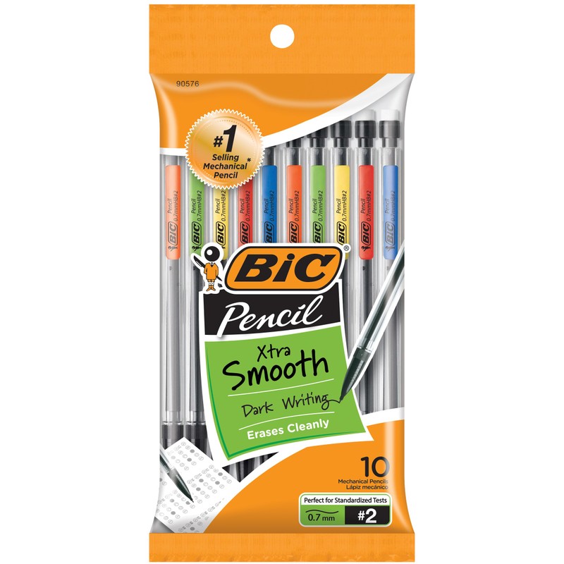Perfect for standardized tests, BIC Xtra-Life Mechanical Pencils feature smooth-writing #2 leads that never need sharpening, do not smudge, and erase cleanly. A dependable choice for performance, one BIC Pencil equals 2 ½ wood case pencils. Continuously sharp, these #1-selling* pencils help ensure you're always ready to write, draw, sketch, or doodle. The lead advances quickly and easily with a simple click, while the 0.7mm medium point is versatile enough for a variety of writing activities. The clear barrel with colorful clip offers a sophisticated look, making this pencil a great choice for schools and offices. *Source: The NPD Group/ Retail Tracking Service / U.S. Actual Unit Sales (Retail & Commercial Combined)/ Jul 2016-Jun 2017