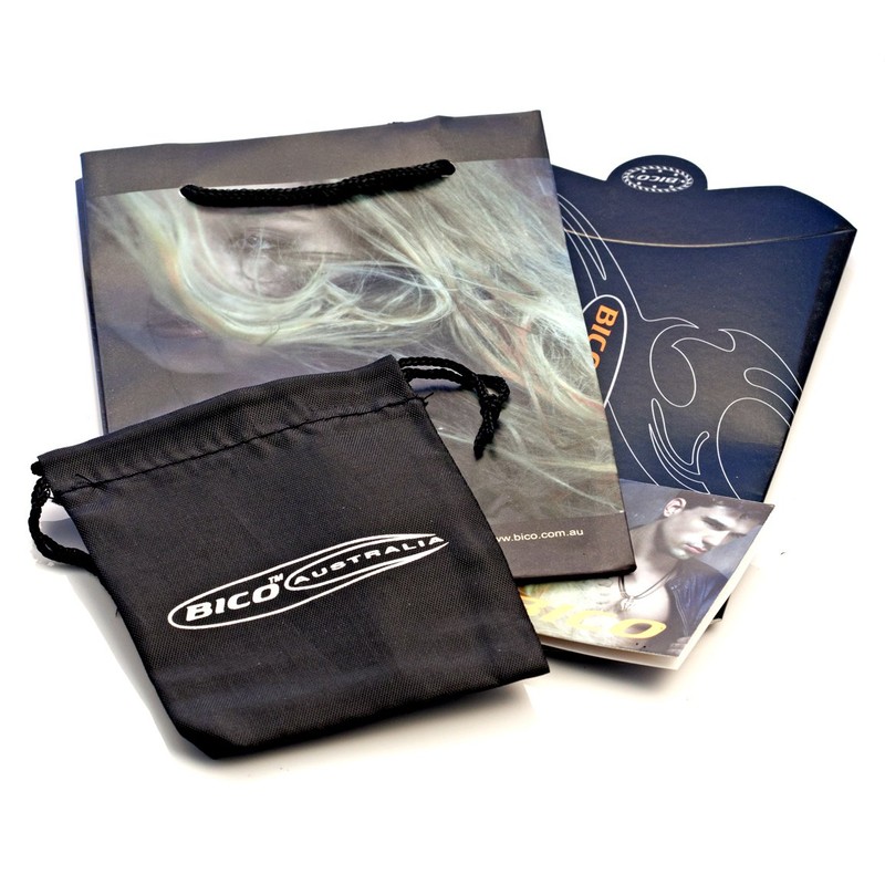 With a reputation for quality, BICO AUSTRALIA’s large collection of pendants, chains, bracelets and rings is manufactured using fine grade pewter, plated with various layers of silver, brass or copper, hand finished and polished to its unique matte look, then coated with a protective layer to extend the life of the plating. Our special black finish is a black metallic coating of cobalt alloy. Other materials used include the finest European crystals, fine leather hide, PVC, rubber, carbon fiber, New Guinea Rosewood, and transparent coloured resin. Chains and bracelets can be made out of solid brass and copper, stainless steel or cast fine pewter links and clasps.