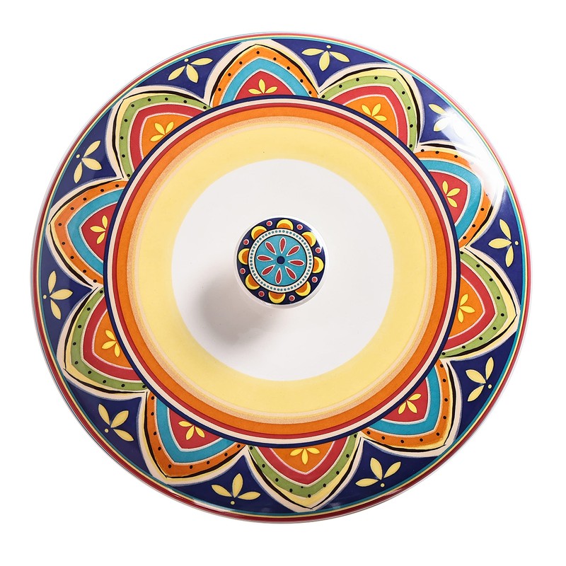 Bico Tunisian Ceramic 8.8 inch Tortilla Warmer, Tortilla Server with Lid, Taco Holder for Mexican Fiesta Party, Taco Tuesday, Cinco De Mayo, Microwave and Dishwasher Safe