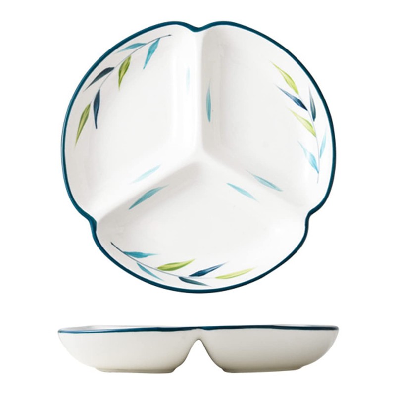 Bicuzat 1 PCS Ceramic Portion Control Plate Divided Plate Dessert Dish Salad Plate Dinner Plate-8 Inch-Leaves