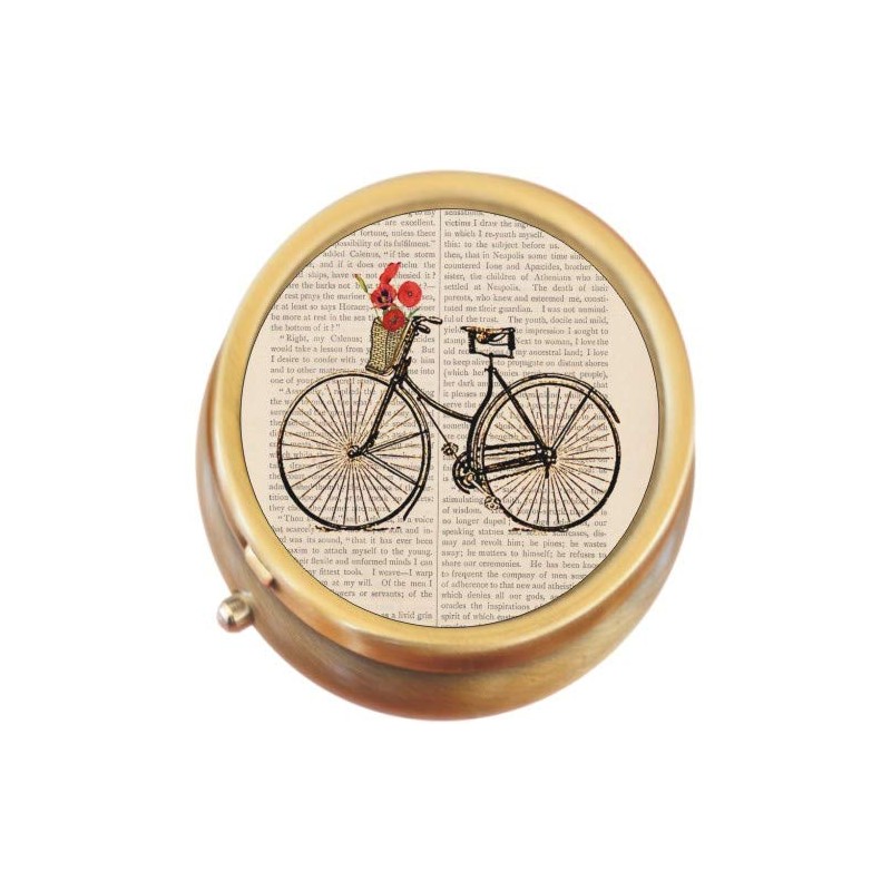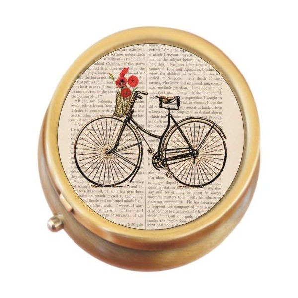 Bicycle Flowers Brass Round Pill Box