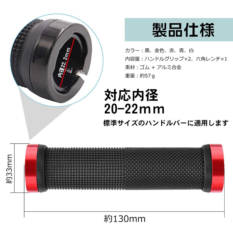 (Applicable range, standard inner diameter 0.9 inches (22.2 mm)): The lock part is made of aluminum material, so it shines with a beautiful metallic luster and is cool. Looks great with any car body Also, the inner diameter of the bicycle grip is 0.9 inches (22.2 mm) (standard inner diameter), so it is highly versatile and can be used on a variety of bicycles. This bicycle handle grip can be used with regular bicycles, folding bicycles, mountain bikes, road bikes, etc. Please check the diameter of the bicycle handle grip before purchasing.