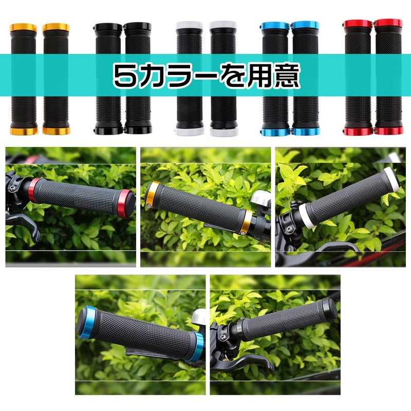 • (High Quality Materials and 5 Colors Available) Bicycle grips are made of rubber, which is not only anti-slip features, but also highly durable, resistant to corrosion and acidic substances and deterioration. It can be used for a long time, and you don't need to change your grip The lock part is made of aluminum material, so it is durable and firmly fixed to the handle for peace of mind. It is also resistant to corrosion and has a beautiful metallic luster that makes it look cool! Available in 5 colors, so you can choose the color you like to match your car