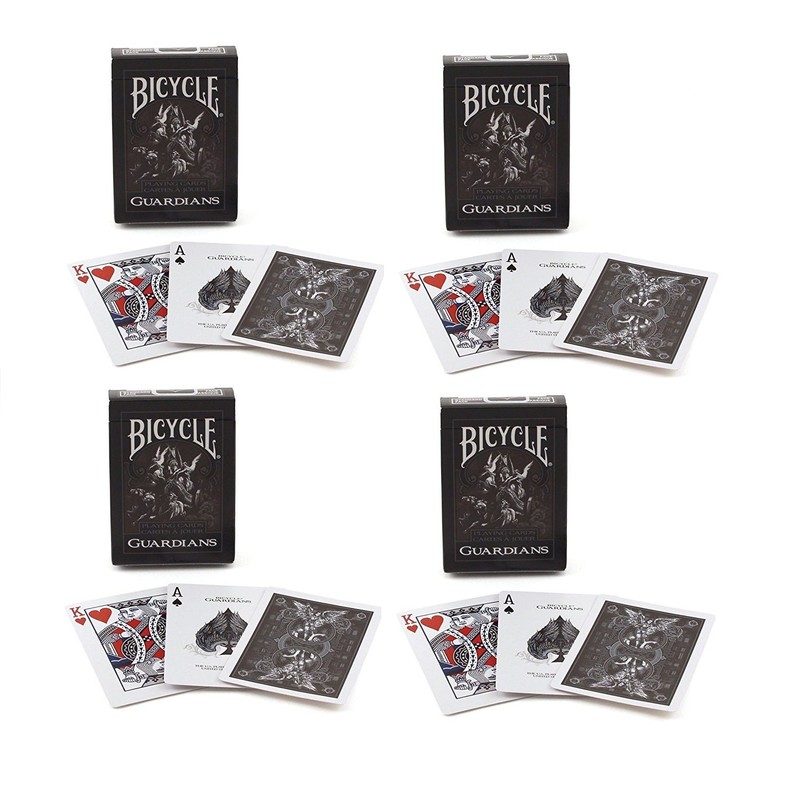 Whether you're interested in magic or cardistry, this deck has you covered. With its enhanced flexibility and strength, the BicycleGuardians maintains its shape longer and provides steadier handling. Giving you control and confidence whenever you need it.Guardians cards sharpen the mind and improve sleight of hand with tips and tricks for the beginner magician in us all.The Bicycle Guardians cards design was created in conjunction with the minds behind Theory11, the go-to group for all things magic and cardistry. A deck of these Bicycle playing cards makes a terrific addition to the magicians arsenal of tricks or the card collectors assortment.With a little practice, you'll be ready to be the center of attention at the next party! These Bicycle decks are made in the USA and feature the patented air-cushioned finish, softly beveled edges, and sandwich construction for enhanced game play