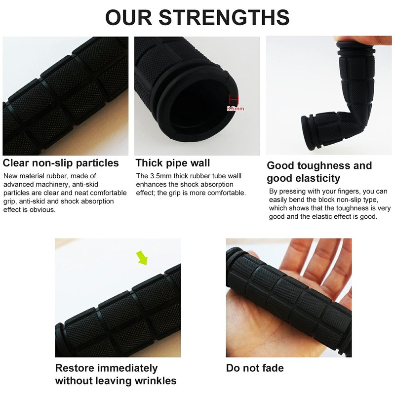 • 【High-quality soft rubber】 The handlebar is made of high-quality rubber, durable, non-slip, soft, and comfortable for cycling. comfortable bike grips ergonomically suitable, for children and adults.