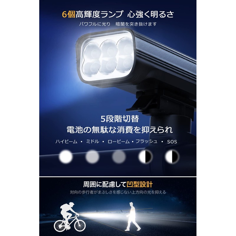 Bicycle Light, Bicycle Headlight, 6,400 mAh Large Capacity & 6 Powerful Lamps, Automatic Lighting Mode, USB, Rechargeable, LED Headlight, High Brightness, 1,000 Lumens, Dual Flashlight, LCD Remaining