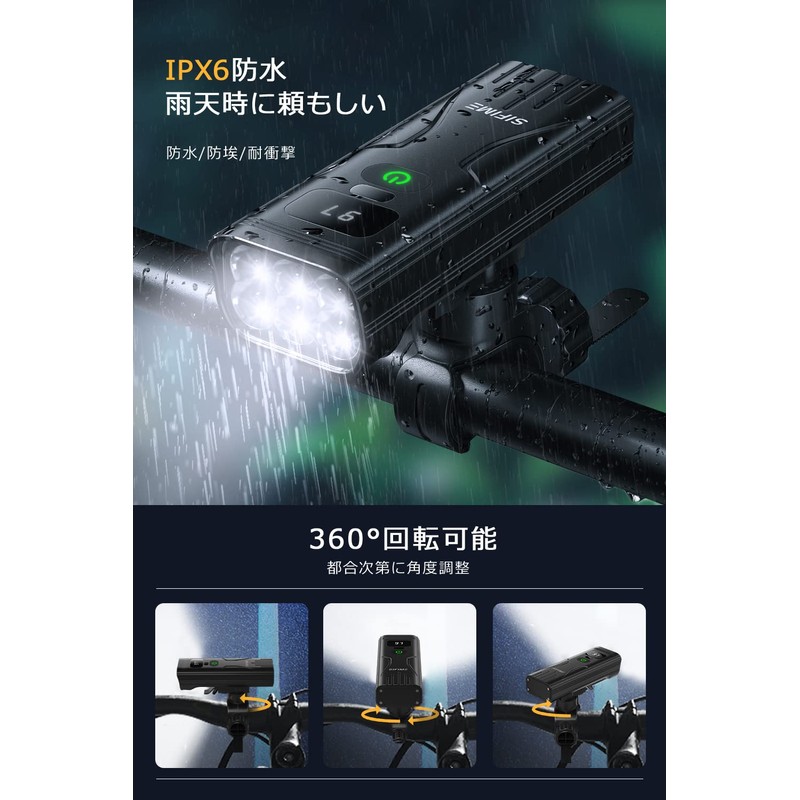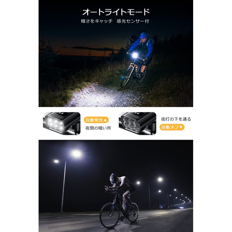 - Automatic Illumination Function, High Brightness, Wide Irradiation: Equipped with 6 powerful lamps, 1,000 lumens and 190° wide illumination, this bicycle light can increase visibility while driving at night and show the presence of a bicycle to drivers or pedestrians. Equipped with a light-sensitive sensor, and long press the power button, the automatic lighting mode turns on, and the headlight automatically turns on and off when it detects the brightness of the usage environment, making it very convenient for commuting to work or school