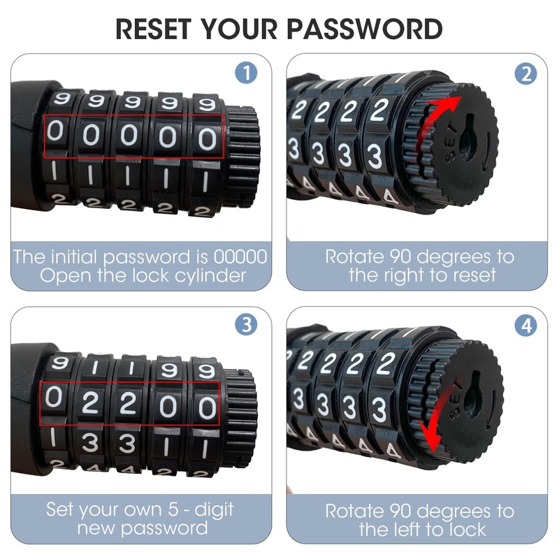 - EASY RESETTABLE CODE - Change your combination anytime with an intuitive reset mechanism. Follow the simple steps to secure your bike according to your preferences.
