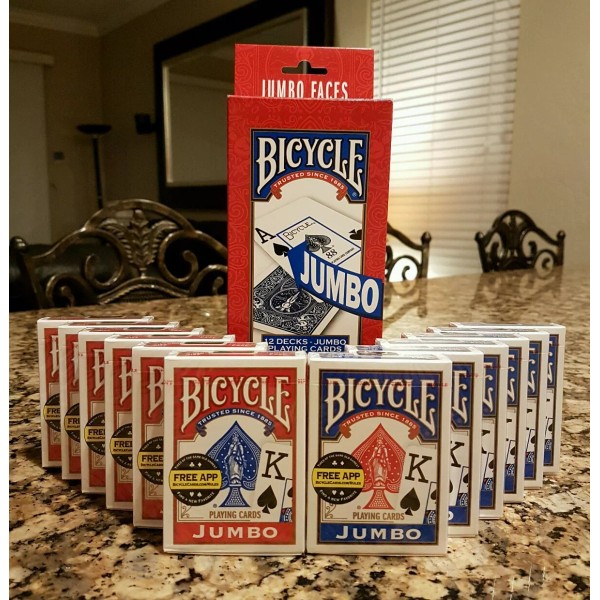 "Brand New & Sealed" 12-Decks of Bicycle Playing Cards * JUMBO Face * 6-Red & 6-Blue Pack * *Every time you open a fresh deck of Bicycle, you are handling 120 Years of Playing Cards Expertise.