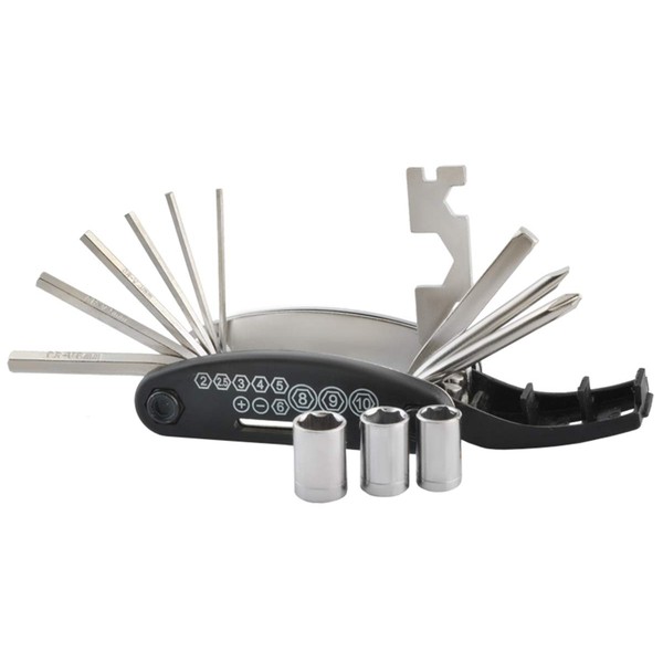 - In set: 1 x Hex 2 mm 1 x Hex drivers 2.5 mm, 1 x Hex 3 mm 1 x Hex drivers 4 mm, 1 x Hex 5 mm 1 x Hex Spanner 6 mm 1 x Cross point screwdriver, 1 X slot screwdriver, 1 X Spanner 8 mm 1 x Spanner 10 mm 1 x Spanner 15 mm 1 x Socket 8 mm, 1 x Socket Spanner Socket 9 mm, 1x Socket 10 mm 1 x Socket
