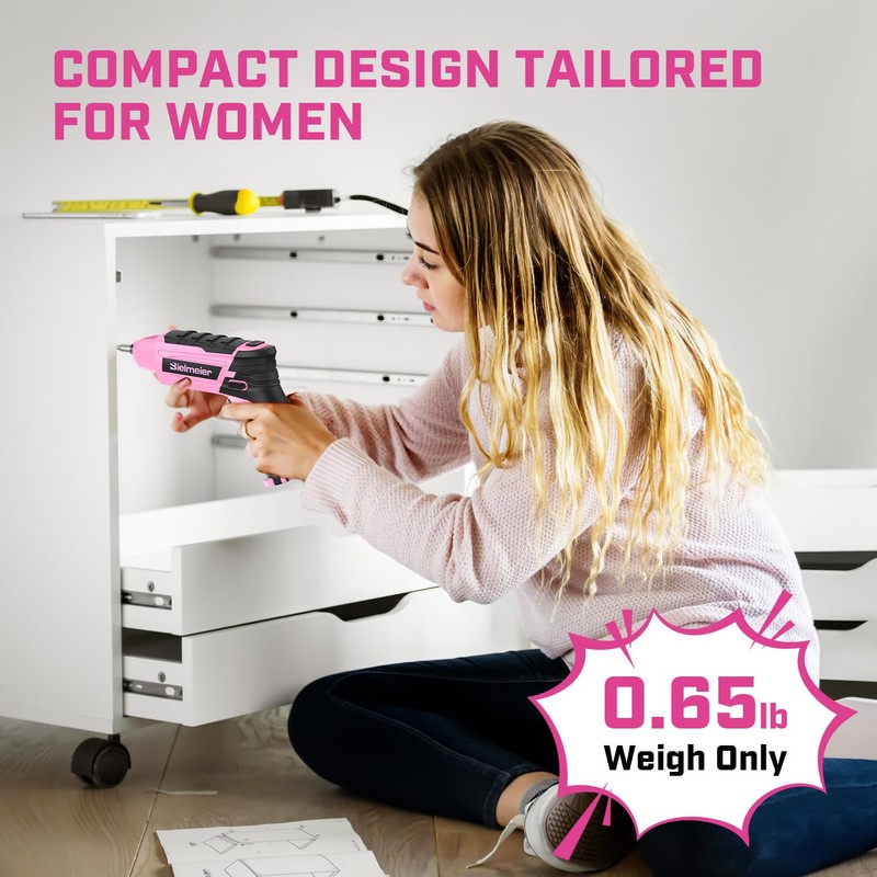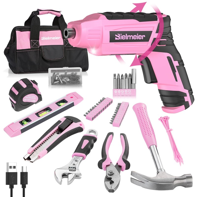 Bielmeier Pink household cordless screwdriver tool set for women,first choice gift, includes 4V USB screwdriver, screwdriver bits, useful hand tools-Ideal for DIY and home projects.